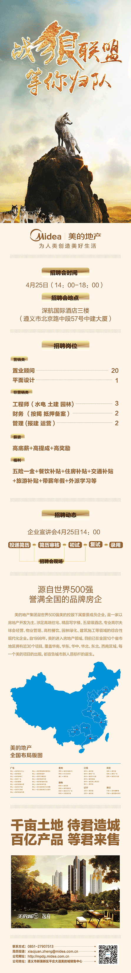 美的地产遵义公司  战狼联盟 等你归队  4月25日深航国际酒店大型招聘会
